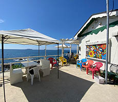 軍艦島の浮かぶ海が目の前一面に広がる最高のロケーションに立つ石窯焼きの本格ピッツァのお店です。お店の前にはオープン前からピッツァを求めてはるばる訪れるお客さんの車が停まっており、開店程なくして満席になるほどの人気店です。軍艦島がくっきり見える14時ごろまでがベストの時間帯ですが、テラス席は争奪戦必至。心地よい潮風を浴びながら、ふんわりモチモチの絶品石窯ピッツァをぜひご堪能ください!